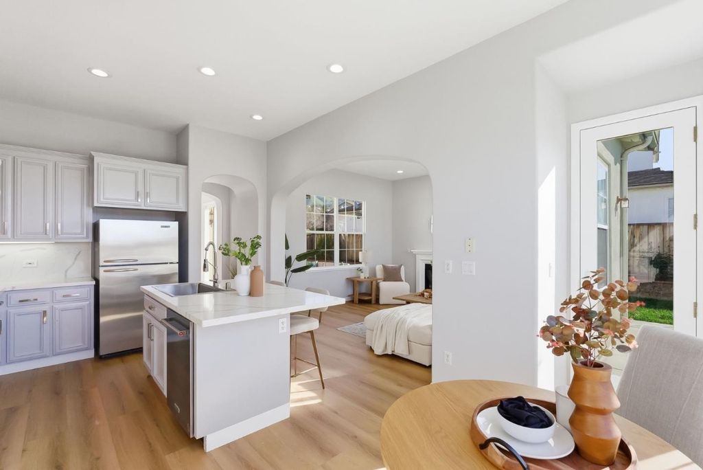 Welcome to this beautifully updated single-story home in the heart of Evergreen, offering a rare blend of modern comfort, thoughtful upgrades, and an exceptional lifestyle location. Built in 2003 and refreshed throughout, this northeast-facing home is filled with natural light and designed for easy living. Features include recessed lighting, stainless steel appliances, quartz countertops, and remodeled bathrooms, creating a clean, contemporary feel. The wrap-around backyard extends your living space outdoors with fresh lawn and updated irrigationideal for entertaining, relaxing, or everyday enjoyment with added privacy. Located in one of Evergreens most desirable neighborhoods, youre just minutes from top-rated schools and within walking distance to Evergreen Village Square, featuring farmers markets, cafes, restaurants, a library, fitness center, and convenient shopping. Single-story convenience, modern updates, and a prime, walkable location come together in this exceptional homeoffering the best of Evergreen living.