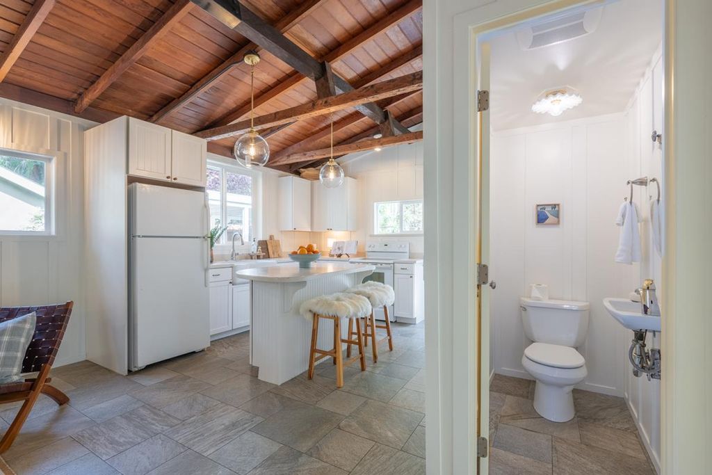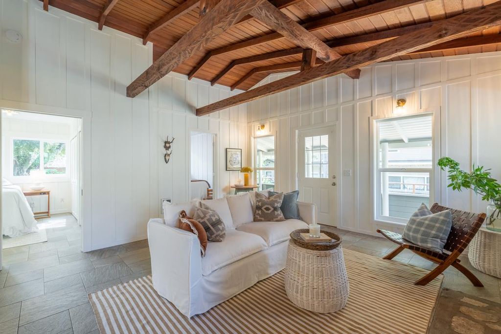 A timeless cottage located in a close-knit neighborhood along the Carmel Valley River, just minutes east of the Village. This peaceful home offers two bedrooms and one and a half baths. With one-of-kind touches, and inviting outdoor spaces, this approximately 800 sq.ft. residence welcomes you with open-beamed ceilings, a river rock fireplace, thoughtful upgrades, as well as two charming outbuildings. Relax on the porch and soak in the sunshine, serenity, and gentle sounds of the nearby river.