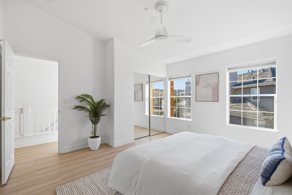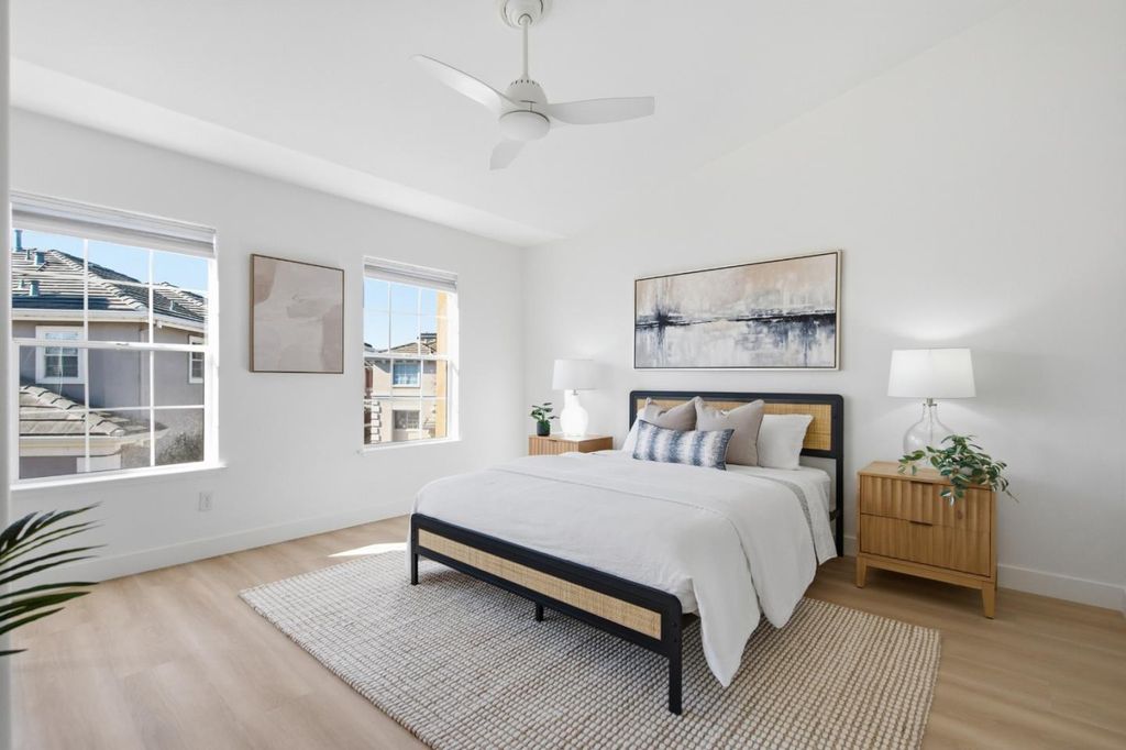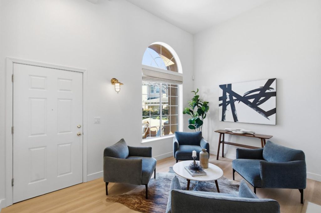 Experience elevated coastal living in this stunning Marina Pointe townhome ideally located across from the San Francisco Bay. This sophisticated 3-bedroom, 2.5-bath residence offers an effortless blend of comfort, style, and natural beauty. Recently refreshed with brand new luxury wood-style vinyl flooring throughout and fresh interior paint, the home offers a light-filled and contemporary living environment. The inviting living room features a fireplace and opens to a charming front deck, where you can relax and enjoy tranquil water views. Upstairs, the primary suite serves as a peaceful retreat with soaring vaulted ceilings and picturesque views of the bay. Two additional bedrooms provide comfortable accommodations for guests, family, or a home office. Additional highlights include an inside laundry room and an attached two-car garage for added convenience. Residents of Marina Pointe enjoy access to a community pool and the unique lifestyle offered by Bair Island. Steps from the scenic trails of the Don Edwards Wildlife Refuge, where miles of waterfront paths invite walking, biking, and nature exploration. Downtown close you can walk or ride your bike, easy access to the Hwy 101 and centrally located on the Peninsula. Enjoy the beauty, and the relaxed elegance of Bay living.