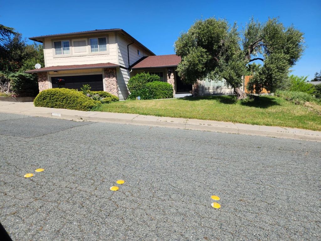 This beautifully refreshed 2,332-square-foot traditional home is tucked away in the rolling hills of the desirable Woodland Hills neighborhood. Recently cleaned and painted, this move-in-ready residence offers five spacious bedrooms and two-and-a-half bathrooms across two levels of functional living space. The entire home has been painted and cleaned, providing a bright and modern feel. Spacious Layout: Features a sunken living room, formal dining room, and a large family room equipped with a wood-burning fireplace. Gourmet Kitchen: An eat-in kitchen designed for entertaining, complete with a double oven, gas cooktop, and breakfast bar. Convenience: Includes an indoor laundry room and a versatile layout with one 5th bedroom located on the main floor. Expansive Lot: Situated on a 0.29-acre corner lot within a quiet cul-de-sac. Great Backyard: The property boasts a large, fenced backyard perfect for outdoor activities or potential pool installation along with views of the surrounding hills. Ample Parking: Features an attached two-car garage and dedicated RV/boat parking. Prime Location: Just minutes from local schools, parks, and dining options, with a quick 8-minute drive to Concord for additional shopping and entertainment.