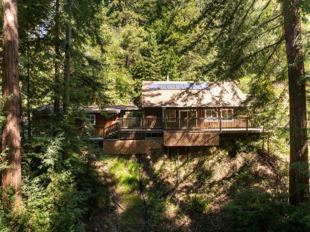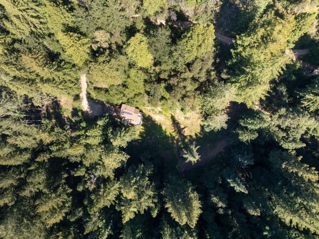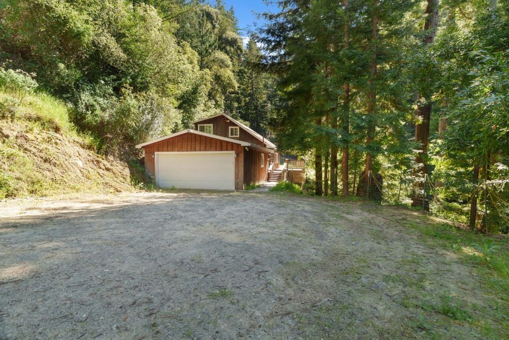 Set on 17 private acres in the Santa Cruz Mountains, this off grid 3 bed 2 bath retreat offers a rare blend of seclusion and accessibility, just 30 minutes from town and everyday conveniences. Designed for relaxed California living, the home features generous deck space ideal for outdoor dining, entertaining, or unwinding under the stars. A detached two car garage adds flexibility for storage or a workshop, perfect for hobbies like woodworking. Inside, recent upgrades include durable LVP flooring. The expansive land opens the door to a variety of uses, from horse property potential to creating your own network of trails for hiking, mountain biking, or ATV adventures. Properties like this are seldom available, offering a unique opportunity to enjoy privacy, space, and the outdoors right at your doorstep.